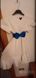 Vendo abito bianco di cotone con bolero e cintura blu (età 9-10 anni) usato una sola volta, come nuovo.