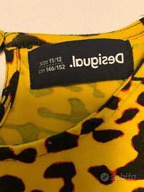 Abito Desigual bambina animalier, 10 anni, da etichetta size 11/12 cm 146/152, in morbida maglia di cotone felpatino. Condizioni perfette. 3 grandi balze e una nelle maniche. Altezza totale cm 80, torace cm 34, da spalla a spalla cm 30, lunghezza manica cm 53.