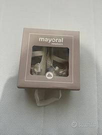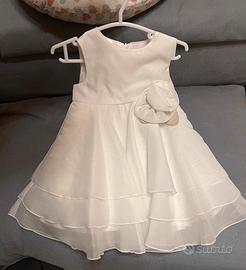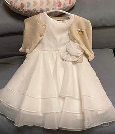 Abito per cerimonia iDo in chiffon per bambina di 9 mesi comprensivo di cardigan iDo color oro taglia 9 mesi, scarpette Mayoral abbinate n. 19 e body IDo 12 mesi.