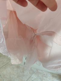 MAI INDOSSATO, SOLO RIMOSSO CARTELLINO PER ERRORE. Assolutamente perfetto per battesimo, matrimonio o altre cerimonie. Rosa cipria con pizzo bianco meraviglioso.