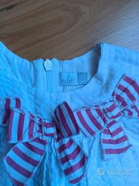 Splendido abito Oibò! tg. 12 mesi. in pregiata mussola di cotone 100% con lavorazione a rilievo (gofrato), freschissimo e non si stira! Bianco ottico con tre maxi fiocchi a righe fucsia. Qualita sartoriale superiore, stile chic ed eleganza. Condizioni perfette. Prezzo boutique €50, preso in saldo a 25. Ritiro a Torino zona Vanchiglia. Possibile spedizione.