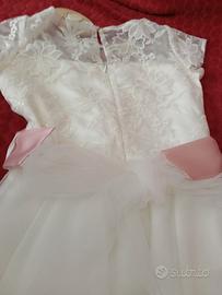 abito per la prima comunione o damigella per bambina avorio con corpetto in pizzo con cinta con fiori Alessia