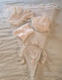 abito prima comunione bambina età 10 anni circa misure abito in foto. mod. sposina completo di accessori come foto. abito in pizzo con maniche semitrasparenti 2 strati. 3 gonne. cerniera posteriore perfettamente funzionante. pronto da indossare perché lavato e igienizzato. compreso accessori.