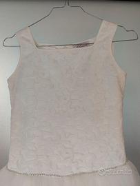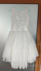 Abito in pizzo e morbido tulle, con il retro leggermente più lungo e stringa sulla schiena per rendere il corpetto aderente al corpo, utilizzato una sola volta per qualche ora, come nuovo.