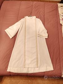 Bellissimo Sàio, sartoria Vaticana, indossato una sola volta, adatto a bambine/i, completo di tutti gli accessori. Misure: cm. 110 (tunica) cm. 47 (maniche) cm, 34 (scapolare).