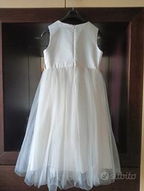 vestito per Prima Comunione marca Alessia in organza, raso, sottogonna semirigido e parte alta lavorata in rilievo. colore bianco avorio. Nella parte bassa, solo nell'organza, è presente un piccolo strappo, riparato con filo invisibile, impercettibile. Nella foto è evidenziato in rosso. Non ci sono segni di usura o macchie. posso spedire.