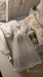 Esclusivo abito in miniatura in scala 1:12, un capolavoro di sartoria per collezionisti esigenti. Questo modello richiama i fasti dell'epoca vittoriana, ideale per una dama di alto rango nella vostra casa delle bambole.