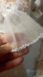 Dettagli: Spilla gioiello incastonata, maniche lavorate, gonna in tulle.