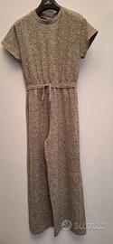 Abito-tuta invernale per bambina ZARA pezzo unico, colore verde oliva melange, girocollo e mezze maniche, parte inferiore pantalone largo palazzo, abbottonatura sulla schiena con tre bottoni, arricciatura in vita con elastico e finta coulisse, morbido e caldo.