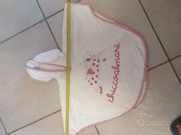 Morbido accappatoio a poncho per neonati, perfetto per asciugare i più piccoli dopo il bagnetto. Il design è bianco con un simpatico disegno di orsetti e dettagli a pois rossi. - Orsetti stilizzati con pois rossi. - Bordatura a righe rosse e bianche. - Cappuccio integrato.