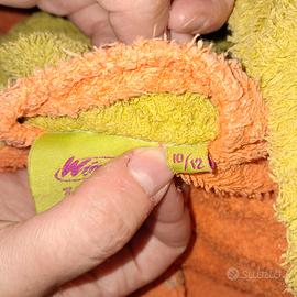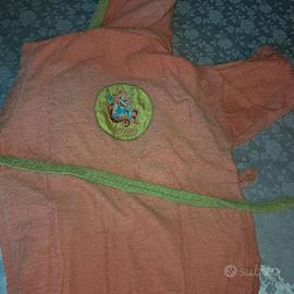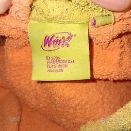 Accappatoio Winx ancora in buone condizioni: davanti è presente il logo "Winx" e una tasca laterale, mentre dietro vi è il disegno di Bloom; corda verde per stringere in vita.