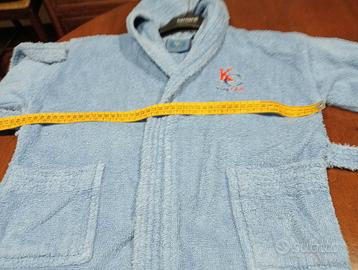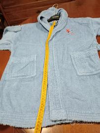 Accappatoio di spugna e cappuccio azzurro .etichetta dice 2/4 anni ..vedi misure. Dalle foto .usato molto poco Della Kids club e Keep Cozy