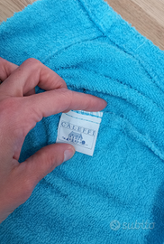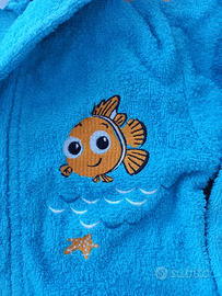 Vendo accappatoio di spugna color turchese per bimbo/a di 18/24 mesi, originale Caleffi, Disney Baby, con ricamo di Nemo, veramente come NUOVO, a soli 25 euro!!! Aggiungo IN OMAGGIO un paio di pantofoline imbottite, antiscivolo, bianche/azzurre, ad animaletto ed un paio di ciabattine con velcro regolabile e cinturino posteriore elastico, in gomma e plastica con fantasia elefantino, n° 26/27, anch'esse, entrambe, come nuove!!!