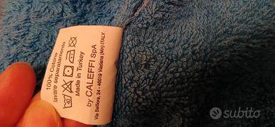 accappatoio in cotone YUPI JUNIOR CALEFFI turchese in cotone con cappuccio e cintura e profilo multicolor in ottime condizioni 6/8 anni