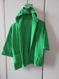 Accappatoio verde a tema rana, in spugna, completo di cintura e pantofole. tg 24-48 mesi completo di confezione originale