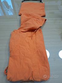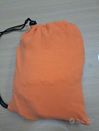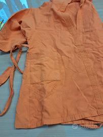 Vendo accappatoio bambina/o taglia circa 4 anni ( lunghezza dalla spalla cm.65), in microfibra , due tasche, di colore arancione, usato ma in ottime condizioni, compresa comoda sacca per riporlo e trasportarlo.