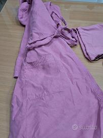 Vendo accappatoio in microfibra di colore rosa, 2 tasche e cintura e comoda sacca per riporlo. Usato ma in ottimo stato. Lunghezza 70 cm. Taglia indicativamente 5/6 anni.