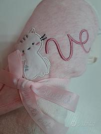 Accappatoio per neonata, rosa, con gattino e scritta Love sul cappucio. Taglia unica. Blukids. Nuovo con etichetta