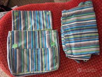 Esterno a righe verticali multicolor, interno verde.