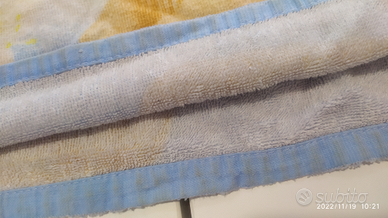 Accappatoio poncho per bambina, con cappuccio, con stampa della fata Trilly. L'accappatoio è in ottime condizioni, presenta qualche piccolo segno di usura. Marca Caleffi