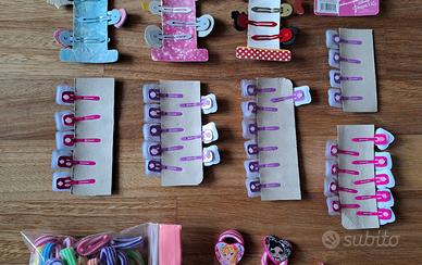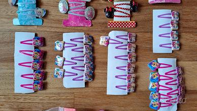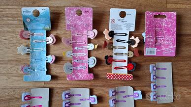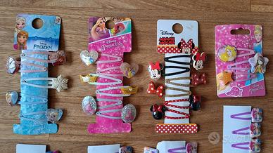 Accessori per capelli da bambina: mollette Frozen, Disney Princess, Minnie, Shimmer and Shine. Elastici Frozen, LOL, Winx. Verrà inviato esattamente quanto riportato in foto. Buone condizioni.