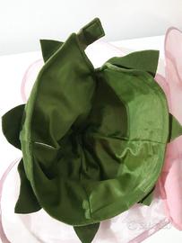 I berretti uno verde e l'altro azzurro entrambi con fiore rosa gigante si regolano con il velcro.