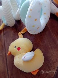 spirale da applicare sul passeggino tessuto soft con sonaglino e tre pendenti - come nuovo -