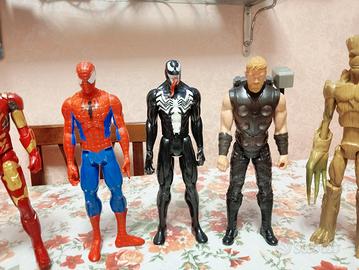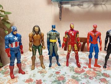 vendo 8 personaggi action figure di Batman, Acquaman, Capitan America, Spiderman, Venom, Groot, Thor e Ironman (Ironman ha luci e suoni) altezza 30cm.