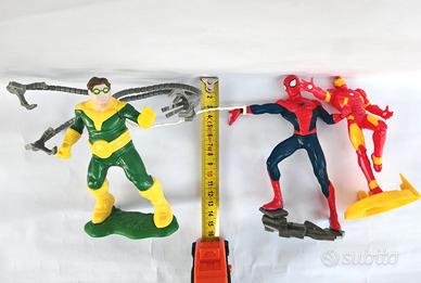 Action Figure Ironman, Spiderman e Doctor Octopus Kinder Maxi Sorpresa, nessuna articolazione, completi di accessori. Altezza 15 cm, ottime condizioni.