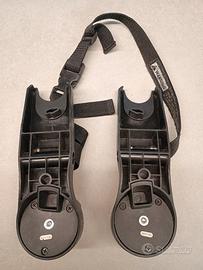Set di adattatori per seggiolino auto (ovetto) del marchio Baby Jogger. Questi accessori permettono di agganciare in modo sicuro un seggiolino auto compatibile direttamente sul telaio del passeggino. Dall'immagine si possono notare alcuni dettagli tecnici: Indicatori di direzione: Sono contrassegnati con le lettere "R" (destra) e "L" (sinistra) per facilitare il corretto montaggio sul telaio. Cinghie di sicurezza: Includono cinghie regolabili con fibbie per fissare ulteriormente il seggiolino. Meccanismo di blocco: Presentano pulsanti rossi e grigi per l'aggancio e lo sgancio rapido dell'ovetto. Questi adattatori sono compatibili con vari modelli di passeggini Baby Jogger, tra cui la serie City Mini, City Select e City Premier