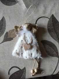 angioletto in finta pelliccia con testa e piedi in legno
