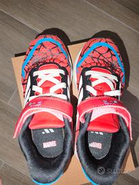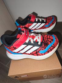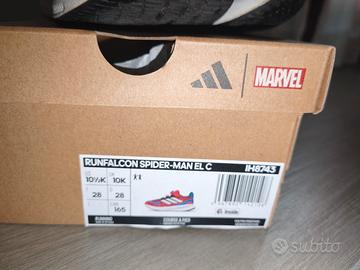 Vendo Runfalcon Marvel Spider-man EL-C taglia 28 (10K UK, 10 1/2K US). Acquistate sul sito Adidas. Colori blu rosso e nero. Ottime condizioni, ragnatele disegnate integre. Scarpa da ginnastica leggera, perfetta per primavera estate. Le stringhe sono finte e sono elastiche, c'è lo Stretch.