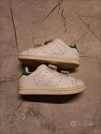 Adidas Stan Smith per bambino/a, bianche con scritta e logo verde.