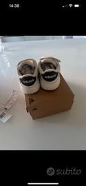 Scarpe Adidas originali per bambino, modello Grand Court 2.0 CF I in colore bianco con dettagli neri, dal design pulito ed elegante.