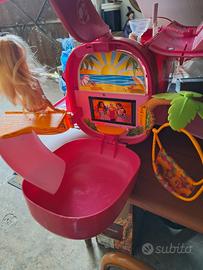 Aereo di Barbie in vacanza con piscina e amaca, accessori come in foto, con suoni e musica. Funziona a pile. Misura 88 cm.