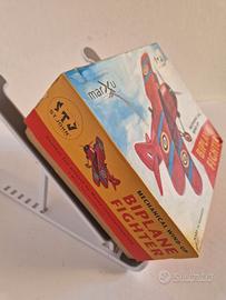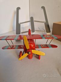 Aeroplano giocattolo biplano giocattolo Made in Shangai, importato in Italia da Dal Negro Treviso. In metallo, funzionante, vintage da collezione. Misure scatola 20x17x8