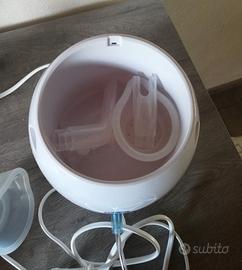 Aerosol "Super Soft" Chicco, utilizzabile da adulti e neonati/bambini. L'apparecchio è stato utilizzato pochissimo, è perfettamente funzionante. Comprende 2 mascherine universali morbide in silicone (una per adulti e una per neonati/bambini), boccaglio, forcella nasale e filtri di ricambio. La forcella presenta una piccola lesione (vedi foto) ma si può ancora usare. Tutti gli accessori possono essere riposti nell'apposito vano. L'apparecchio è molto veloce infatti nebulizza 1ml di soluzione in 5 minuti, non è eccessivamente rumoroso. Prezzo di listino 60€, vendo a 40€.