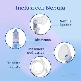 Air Liquide Healthcare, NEBULA, Sistema Completo per Aerosolterapia per Adulti e Bambini, Dotato di RINOWASH, NEBULA SPACER e Maschera Pediatrica, Ideale per tutta la Famiglia, Terapia Completa