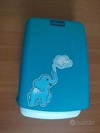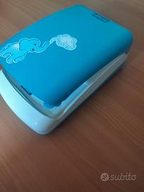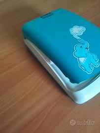 Include ampolla nebulizzatrice, tubo di raccordo, e mascherine pediatriche e per adulti.