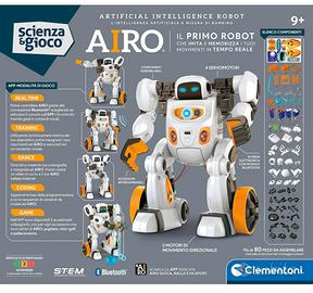 AIRO: un innovativo robot con intelligenza artificiale, che riconosce gesti e comandi vocali, da assemblare e allenare a distinguere i gesti e le voci per ore di divertimento IMPARARE GIOCANDO: il bambino esplora il mondo dell'intelligenza artificiale con un robot da costruire, personalizzare e codificare, insegnando al robot a riconoscere azioni e voci ed eseguire i comandi COME GIOCARE: il bambino, posizionandosi davanti alla fotocamera del telefono, compie movimenti che AIRO impara e ripete; successivamente, i movimenti possono essere richiamati in modalità gioco per giocare, fare sport, afferrare oggetti COSA CONTIENE: gioco ideato, progettato e sviluppato in Italia, per bambine e bambini dai 9 anni in su, con applicazione dedicata per giocare in tutte le modalità; necessita di batterie (4 AA) CLEMENTONI SCIENZA E GIOCO ROBOTICS: giochi per un divertimento che diventa apprendimento, stimolando logica e manualità per assemblare tanti robot e scoprire STEM, coding e robotica; con contenuti digitali per moltiplicare le modalità di gioco