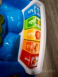 EDUCATIVO E DIVERTENTE: Insegna le prime lettere, i numeri, i colori, gli animali e i loro versi; riproduce 4 generi musicali: classica, pop, disco e rock ed è possibile suonare con 16 strumenti diversi. A seconda del genere musicale la tastiera, i piatti e i 2 tamburi sulle orecchie cambiano il suono dello strumento.