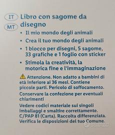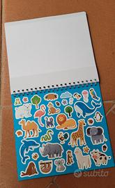 Blocco da disegno per bambini per disegnare e colorare con sagome di animali e stickers.