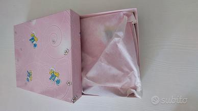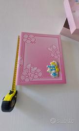 Vendo bellissimo album portafoto di Puffetta (linea I Puffi) con preziosa applicazione in argento bilaminato. Il set è completo della sua scatola originale coordinata. Ideale come regalo per nascita, battesimo o per collezionisti (perché i Puffi sono intramontabili!). Le prime pagine sono sul giallo, con disegni dei puffi, le altre bianche. Per distinguere quelle su cui scrivere informazioni da quelle per le foto. Nuovo, senza cartellino solo perché in questi oggetti non è presente.