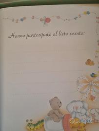 album fotografico per bambini, caratterizzato da un design simile ai pannelli in tessuto Precious Moments, spesso utilizzato per conservare i ricordi di battesimo o nascita.