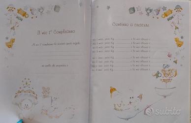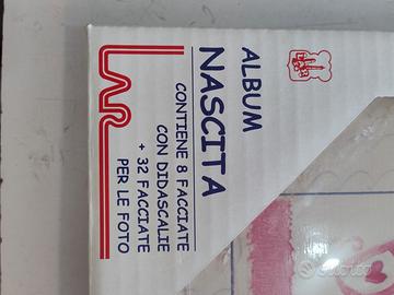 Album nascita per femmina con 8 pagine da compilare e 32 facciate per le foto, nuovo ancora nella sua scatola originale.