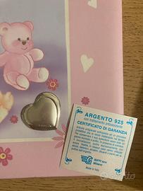 Album per foto con cuoricino in argento e pagine per descrizioni, adatto per una bimba