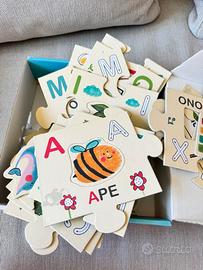 Vendo bellissimo Alfabetiere Gigante della linea EcoPlay, un gioco educativo perfetto per bambini in età prescolare (3-6 anni). È uno strumento fantastico per approcciarsi al mondo delle lettere e della scrittura in modo divertente e tattile. Caratteristiche principali: • Contenuto: Maxi puzzle con tessere grandi e resistenti, facili da maneggiare per le manine dei più piccoli. • Metodo Educativo: Ogni tessera presenta una lettera dell'alfabeto, un'illustrazione colorata e la parola corrispondente (es. A come Ape, B come Barca). • Elementi Sagomati: Le tessere hanno inserti sagomati estraibili (come l'ape o la barca) per stimolare la manualità fine. • Sostenibile: Fa parte della linea EcoPlay, realizzata con materiali di alta qualità e attenzione all'ambiente. • Stato dell'oggetto: In ottime condizioni, completo di tutte le tessere e della scatola originale (come visibile in foto).