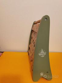Alfabetiere in legno doppia facciata girevole. Un lato lettere un lato immagini con parola.
