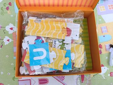Alfabeto in gioco, come nuovo, con all' interno un puzzle per imparare le lettere e un libro delle attività con pregrafismi