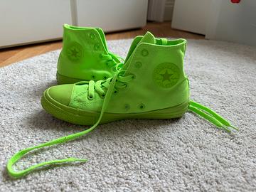 Vendo scarpe All Star numero 35 - 21,5 cm verde fluo tenute in ottimo stato.